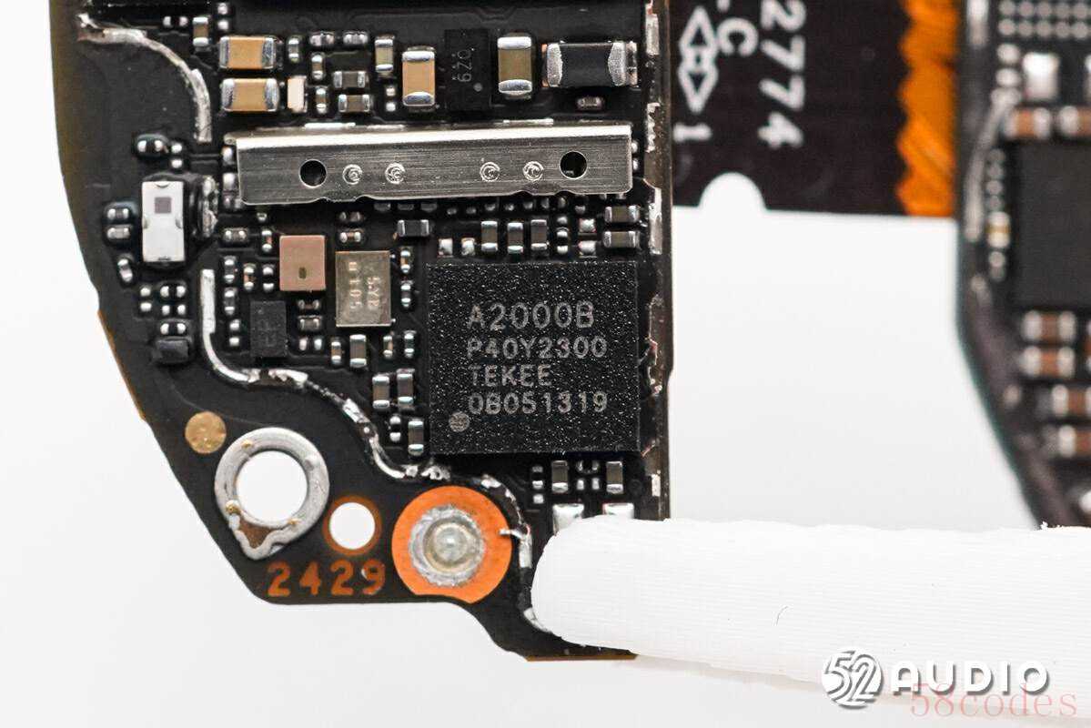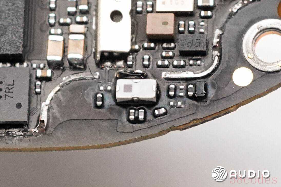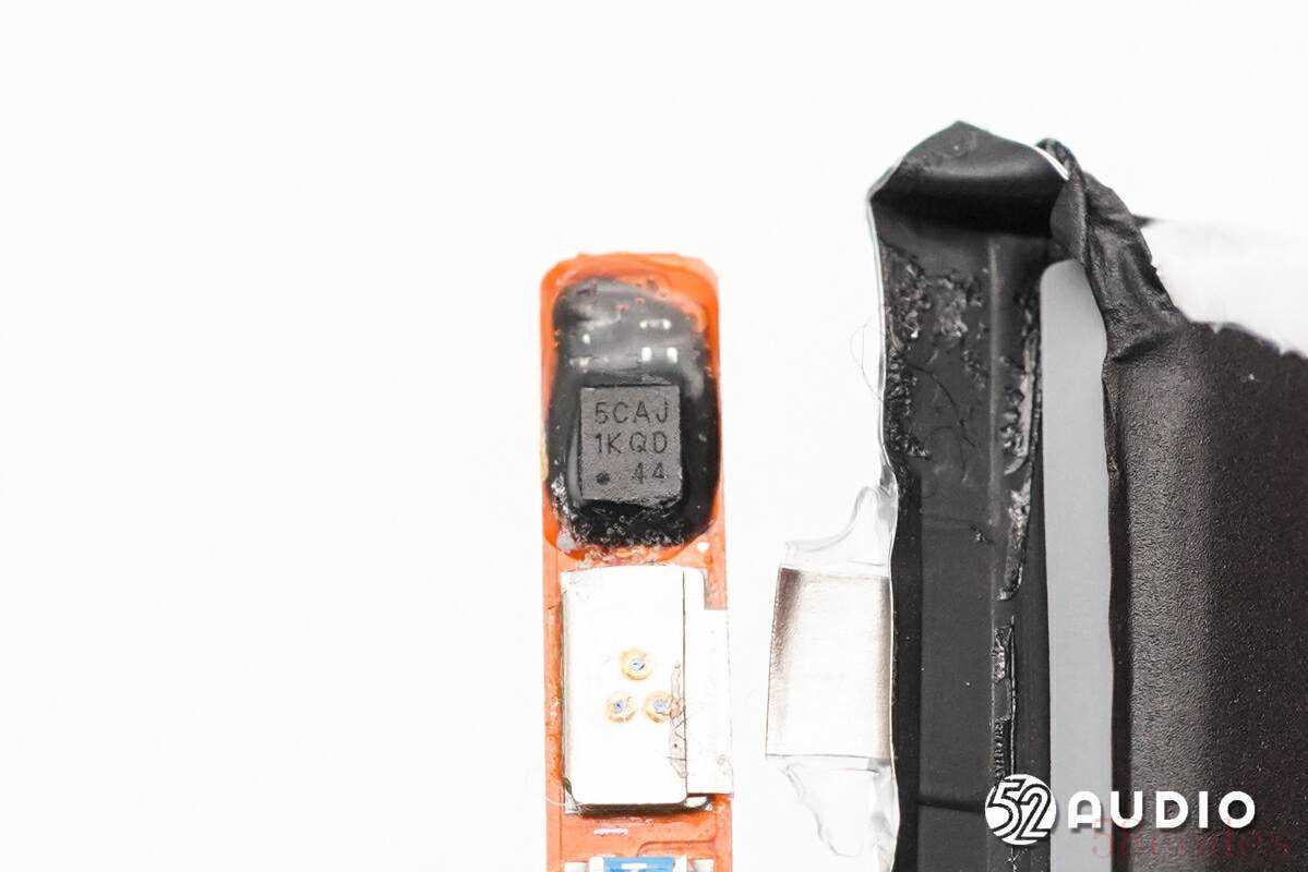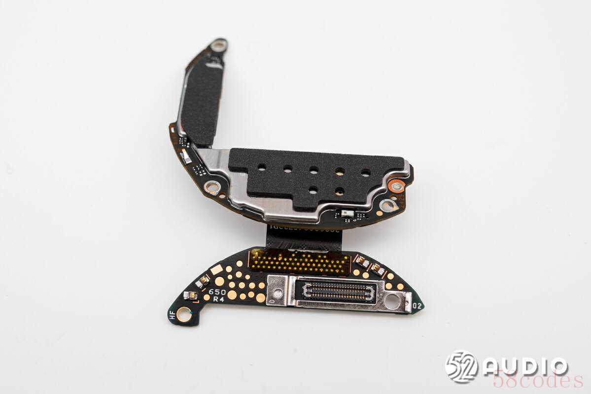 拆掉小板上的屏蔽罩,下方健康监测IC采用了GOODiX汇顶科技GH3020方案,集成了多通道PPG,具备心率、心率变异性和血氧饱和度等监测功能。