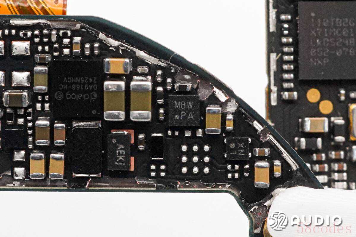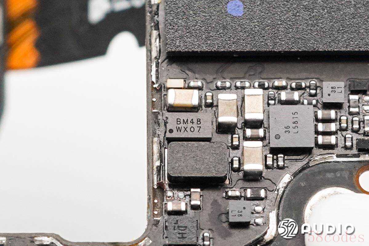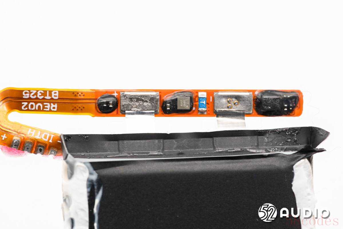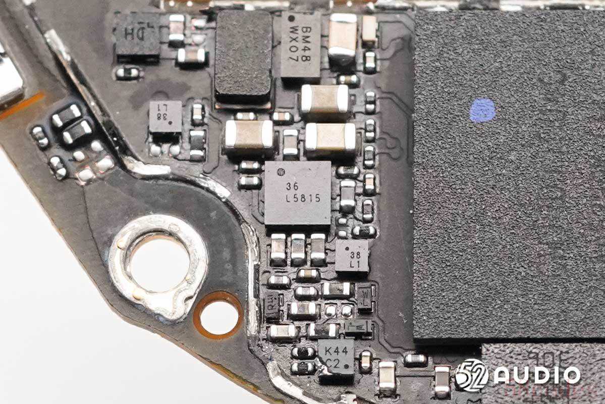 主板上,搭载了BES恒玄BES2700BP单芯片RTOS手表SoC,HiSilicon海思Hi3861V100 2.4GHz SoC WiFi芯片,ST意法半导体LSM6DSOWTR 6轴传感器,Renesas瑞萨DA9168电池充电管理芯片,NXP恩智浦的NFC芯片等;其他还采用了多颗Sunlord顺络电子SDCL系列叠层陶瓷电感等元器件。