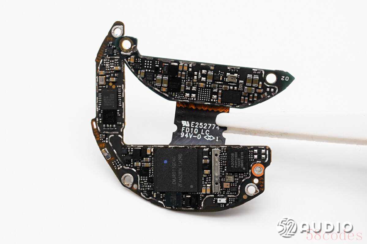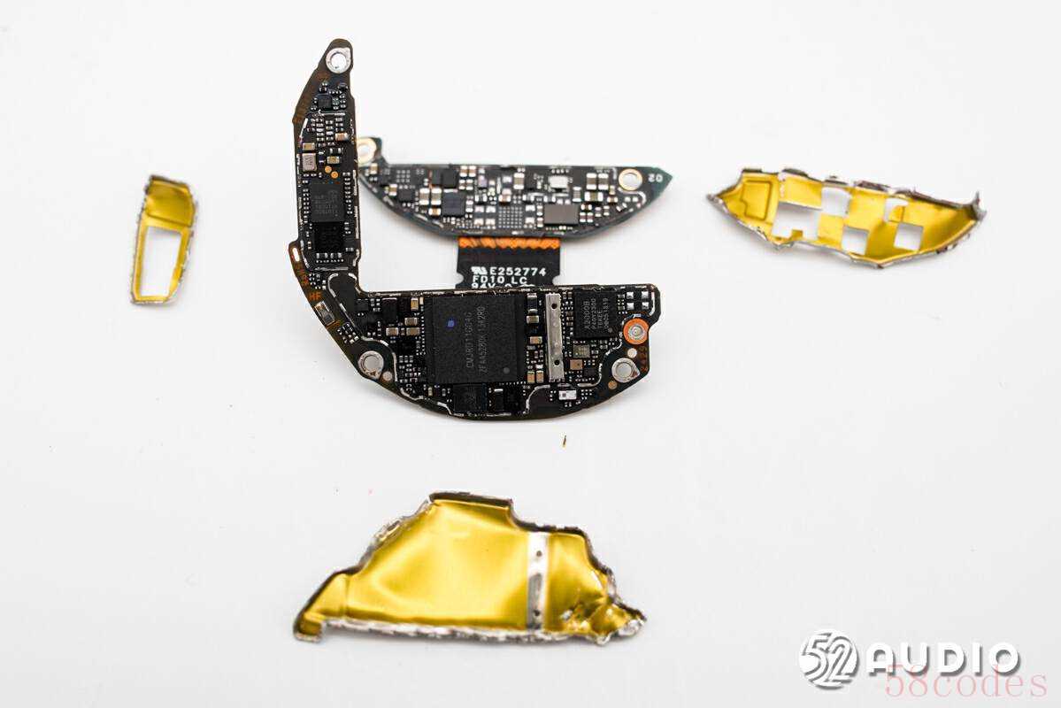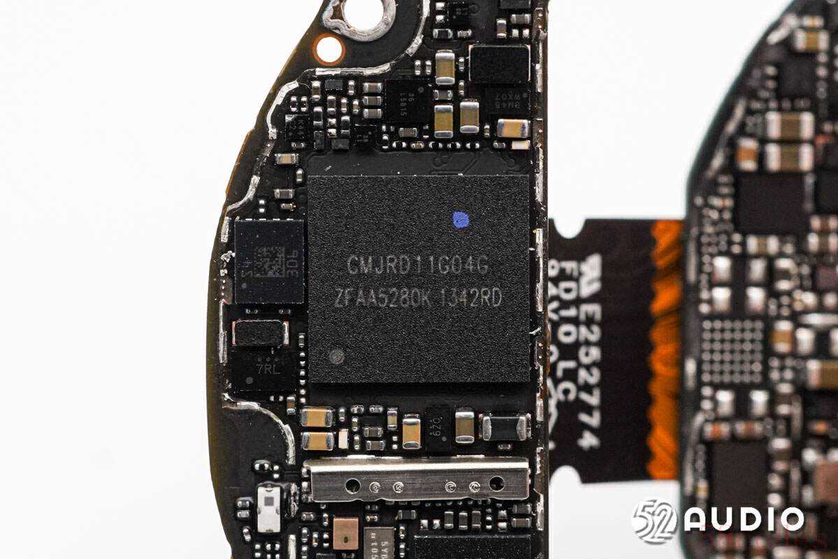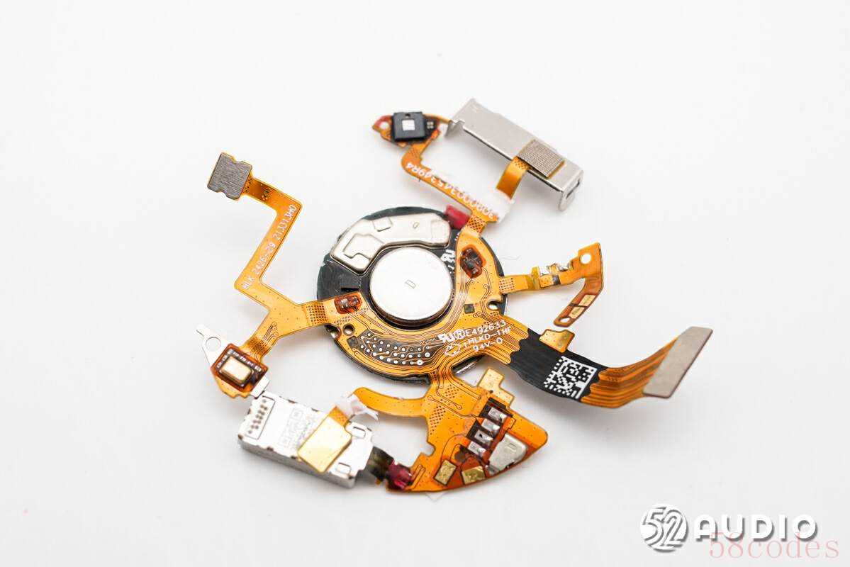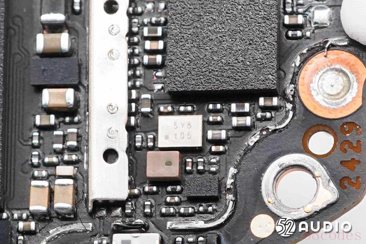 主板上,搭载了BES恒玄BES2700BP单芯片RTOS手表SoC,HiSilicon海思Hi3861V100 2.4GHz SoC WiFi芯片,ST意法半导体LSM6DSOWTR 6轴传感器,Renesas瑞萨DA9168电池充电管理芯片,NXP恩智浦的NFC芯片等;其他还采用了多颗Sunlord顺络电子SDCL系列叠层陶瓷电感等元器件。