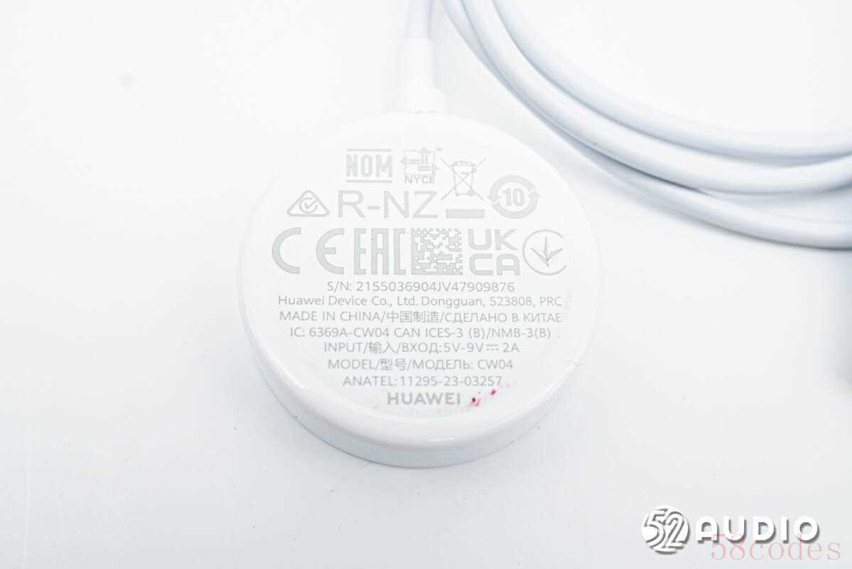 充电底座标注认证标识和参数信息,型号:CW04,输入:5V~9V-2A,中国制造。