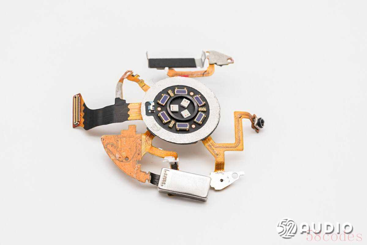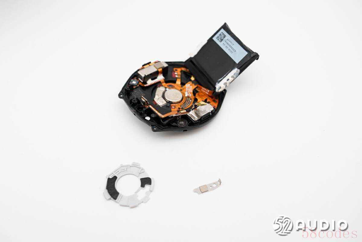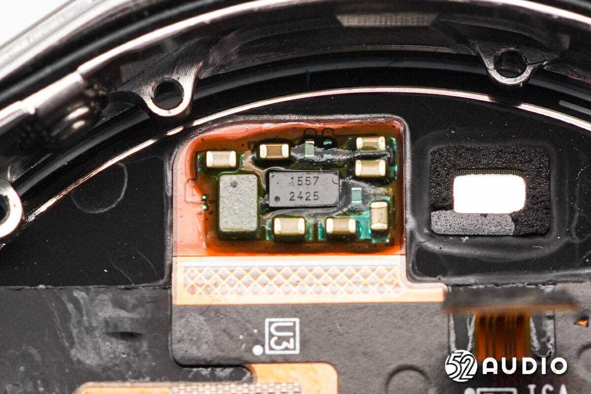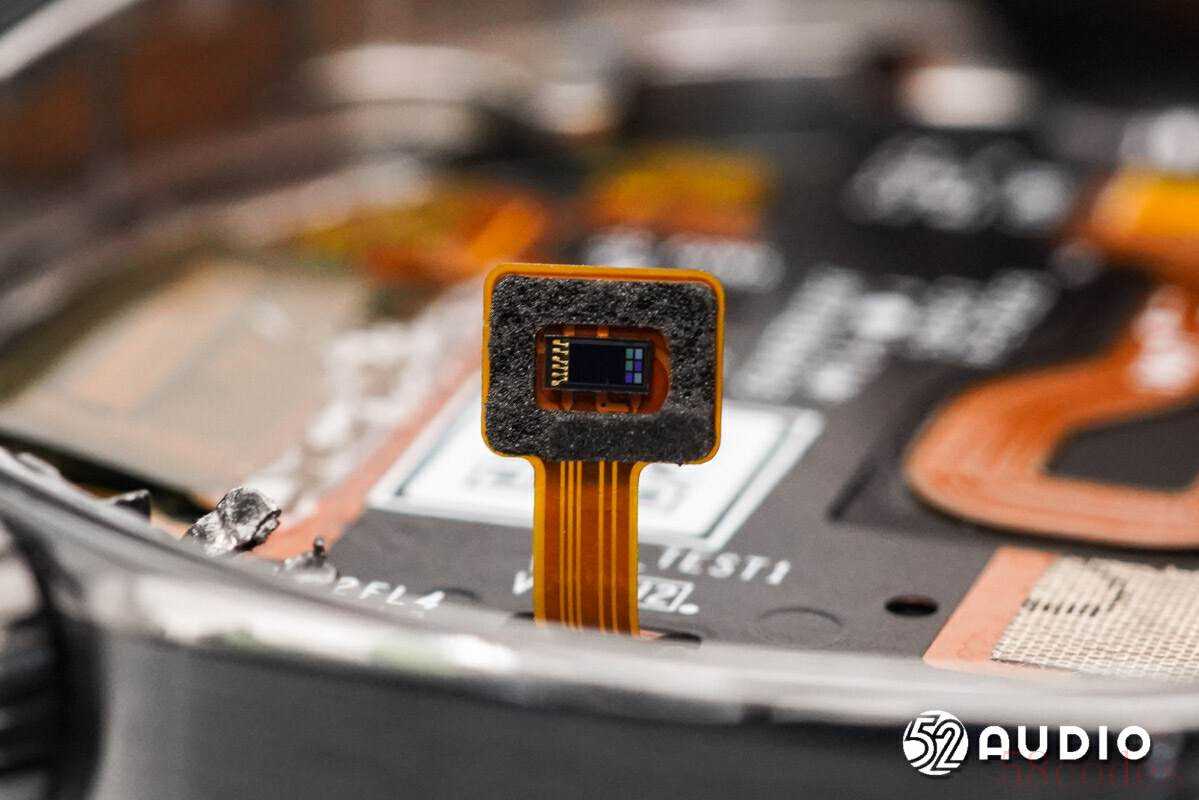 内部主要配置方面,搭载了524mAh锂离子聚合物电池,内置扬声器、麦克风、线性振动马达和气压计,采用了12通道的光电传感器和GOODiX汇顶科技GH3020健康监测IC,用于心率、血氧等多项人体健康指标监测。