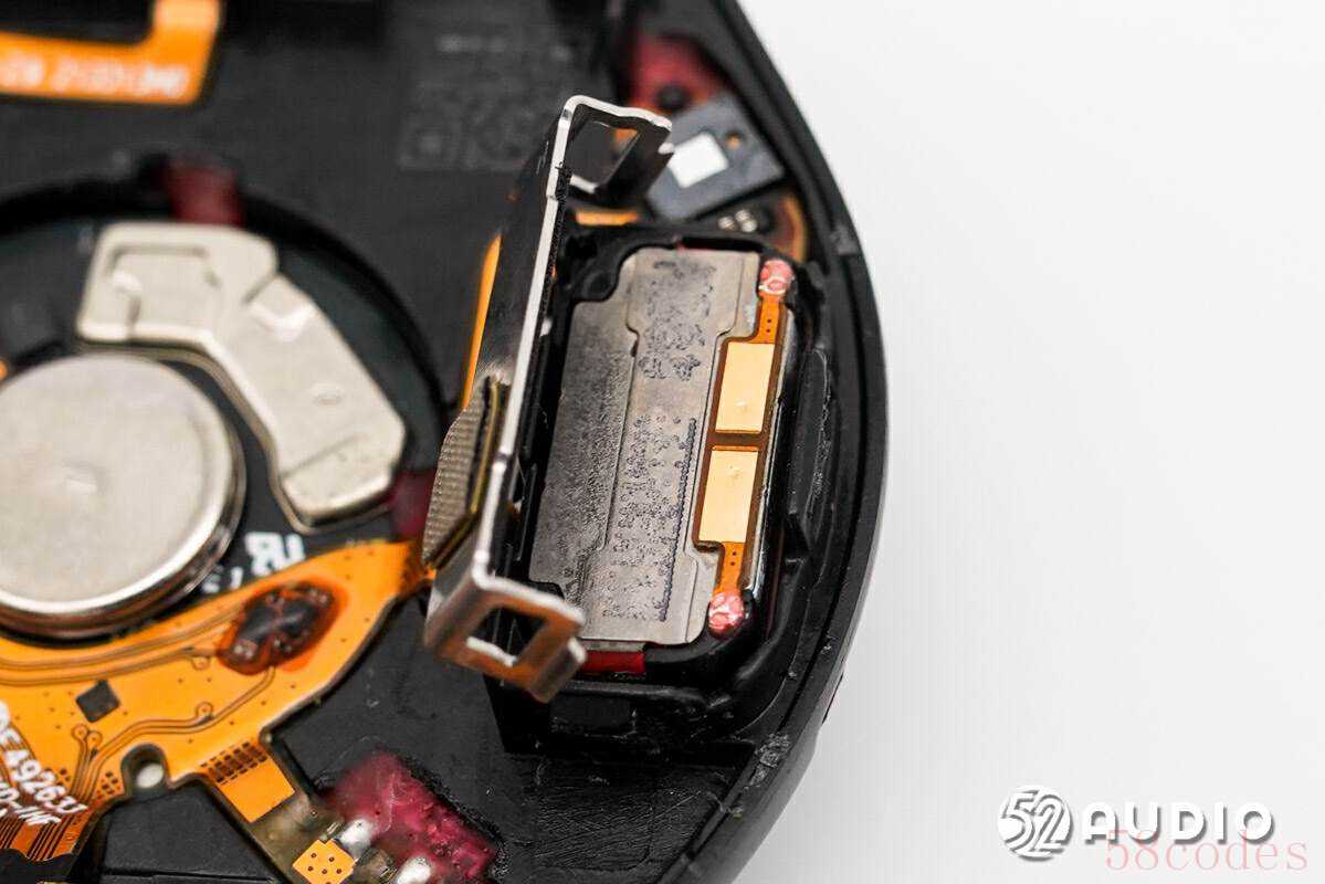 手表内置的线性振动马达特写,用于人机交互振动反馈。