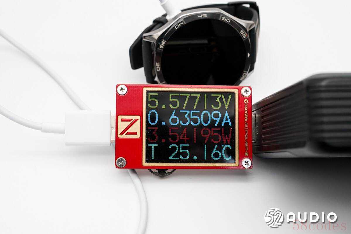 智研所采用ChargerLAB POWER-Z KT002便携式电源测试仪对HUAWEI华为WATCH GT5智能手表进行充电测试,输入功率约为3.54W。