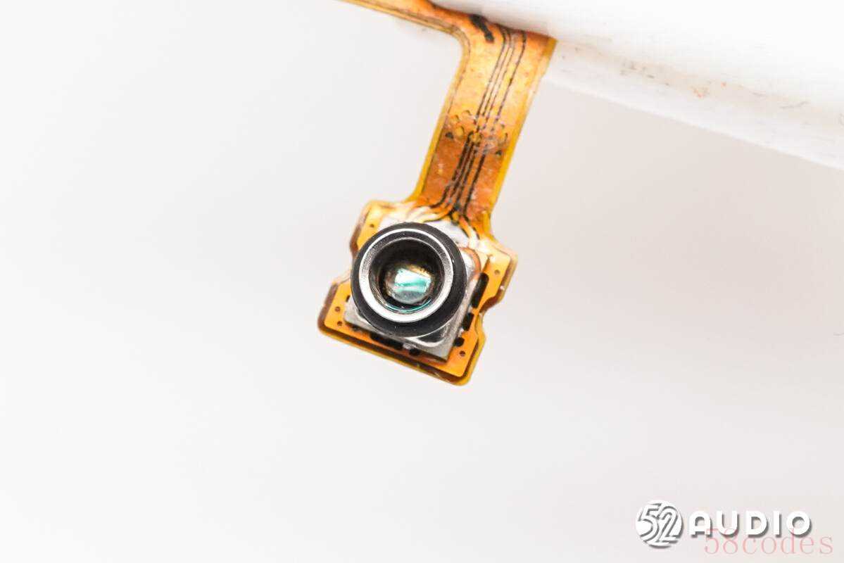 表盘左侧外观一览,底部盖板上设置麦克风拾音孔。