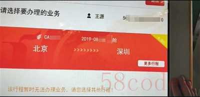 根据“黄牛”提供的明星信息,记者查询到了该明星预订的航班行程。新京报记者 王飞翔 摄