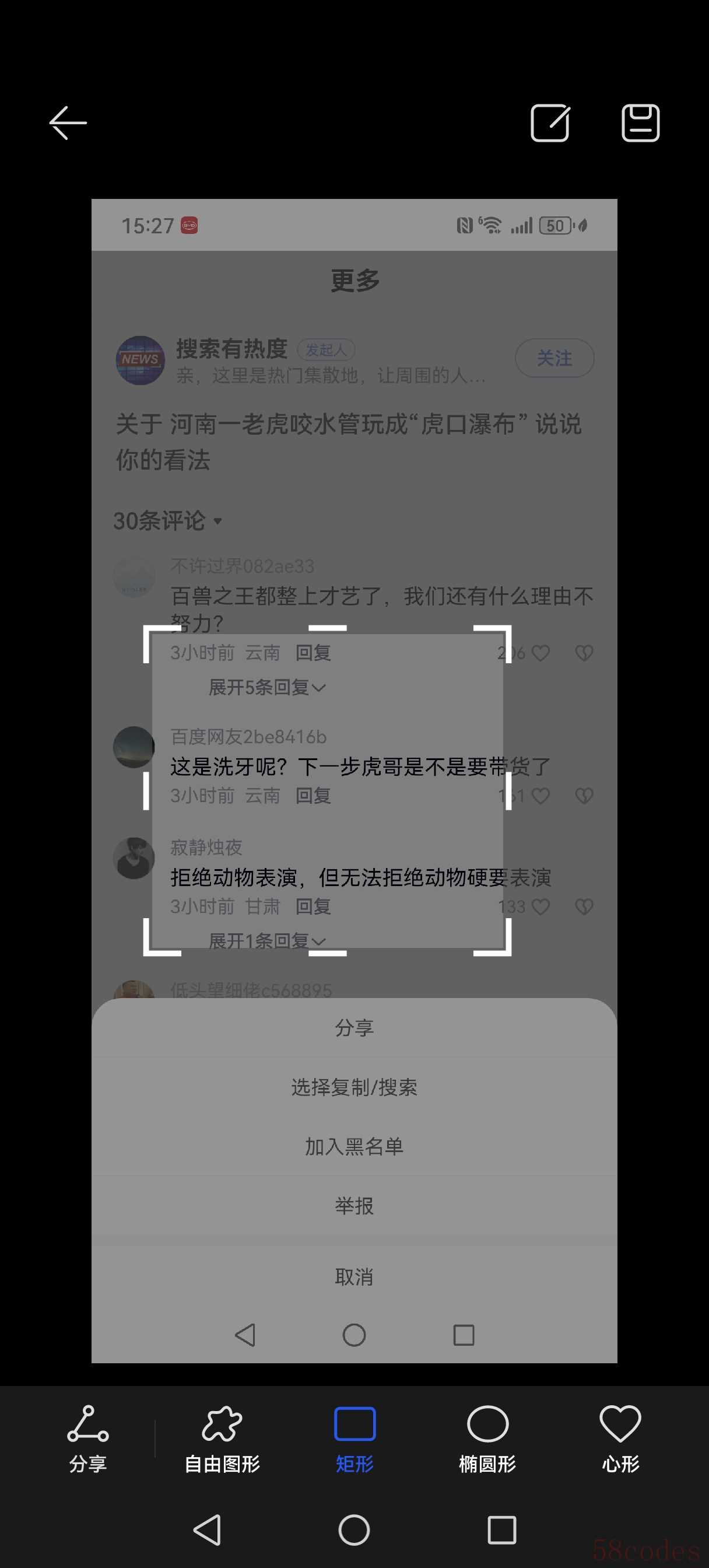 用单指关节在屏幕上画一个封闭图形(如圆形或矩形),就可以只截取该区域的屏幕内容。当你只需要屏幕的一部分时,这种方法尤为高效。