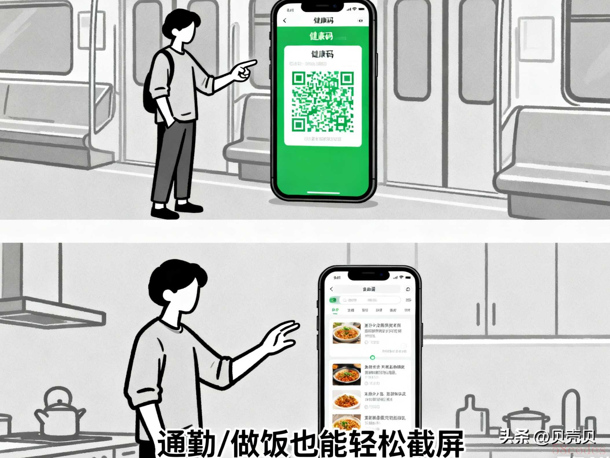 适用场景:双手被占用(比如开车时看导航想截路线、抱孩子时想截育儿攻略)。