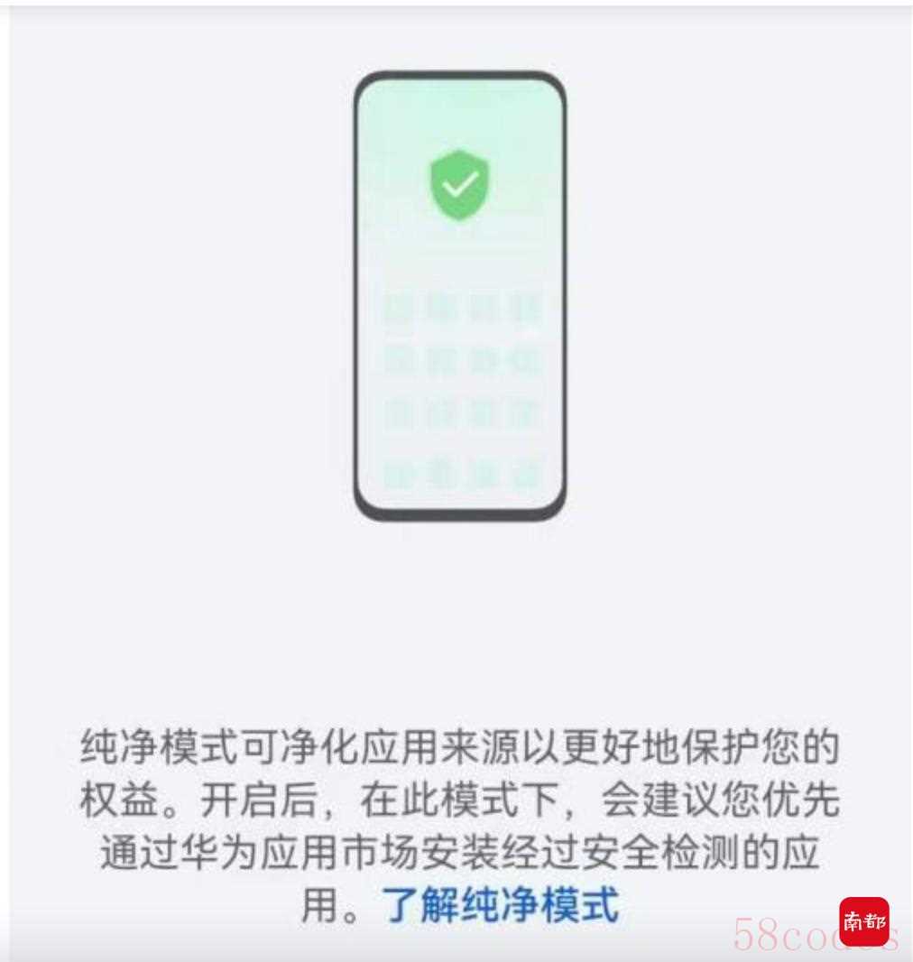在该技术人员的演示下,南都记者看到,下载非华为官方应用商店中的第三方app时,手机会自动弹出是否关闭“纯净模式”。他表示,因为有时候第三方APP安装会弹出要求关掉纯净模式,那是系统保护模式,不接收外部APP,不过有些消费者会在安装第三方软件时手动关掉了纯净模式,这会让恶意软件有趁虚而入的机会。