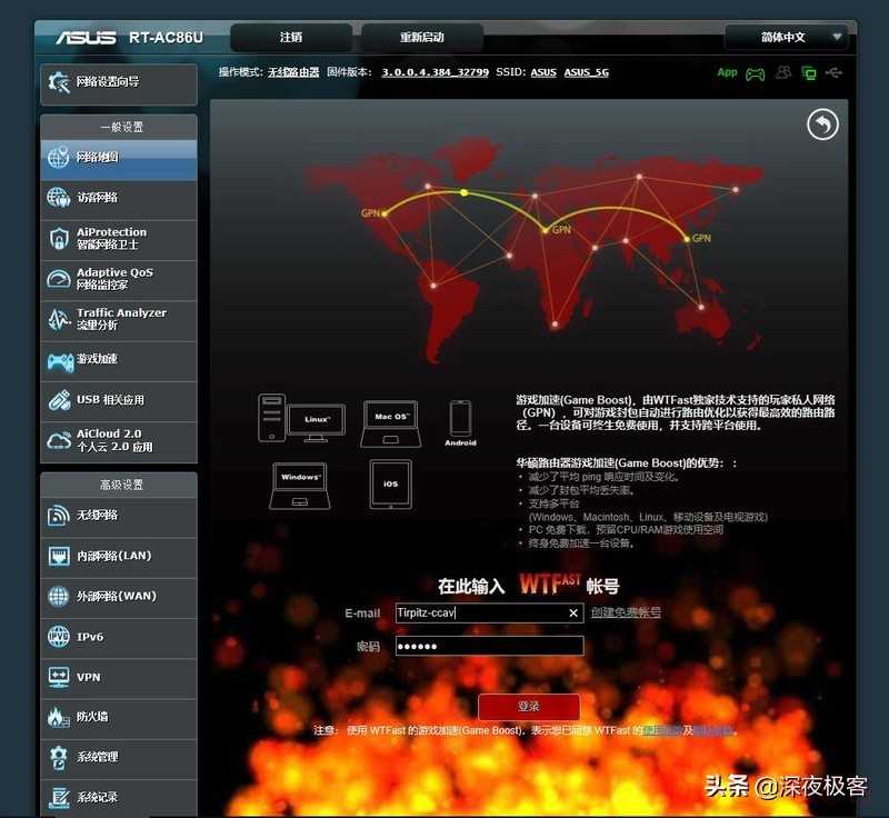 ▲游戏加速功能是AC86U以上的路由器特别具有的功能,能够享受全球不同的服务器之间加速功能。