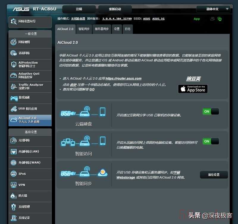 ▲如果想要在外网访问自己连在路由器上的USB设备,或者远程唤醒电脑,可以把这两个功能开起来。