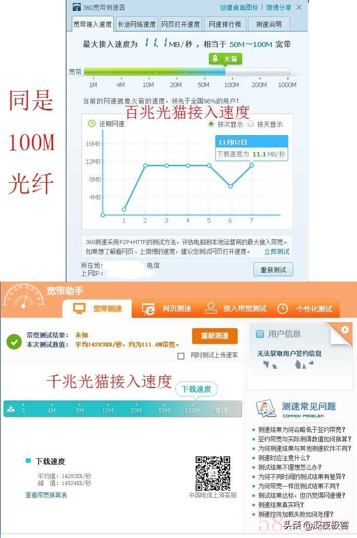 ▲如果你是100M/200M的光纤用户,可以致电光纤通讯运营商,当然要报上自己的宽带账号,对面的人工客服可能会查证户主的个人信息。客服确认无误后,我们跟人工客服声明自己利用测速软件实测,没有达到标称光纤速率,我刚刚翻看了下光猫背面的铭牌,发现是百兆光猫,我的光猫是从你们那边租用的,能否帮我更换个千兆光猫。