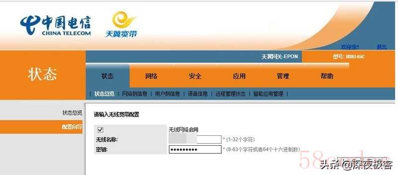 ▲然后选择是否开光猫无线WiFi,如果只有一个人使用,或者预算不足,可以选择使用光猫的WiFi,然后设置WiFi名称跟密码。但是光猫的WiFi只有2.4G频段,而且速率一般是300Mb/S(折合电脑端37.5MB/S,随便一个无线网卡把无线带宽吃光),这样会增加光猫的负担,缩短光猫的使用寿命。而我后端有无线路由器,我在这里选择关闭光猫的WiFi,减少辐射与干扰,同时把拨号移动到无线路由器AC86U,让光猫只是做桥接作用,这样基本上可以撑到万兆光猫+万兆路由器了。