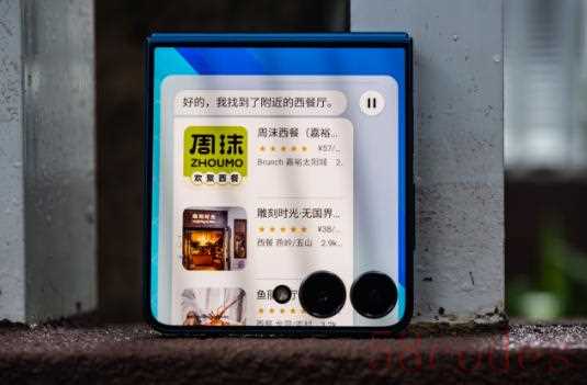 需要强调的一点是,对于大多数普通用户,使用AI助手频率最多的,往往还是这种相对碎片的内容查询,比如上面的寻找附近的美食,查查天气、穿搭建议之类的。小折叠屏包含了很多外屏的使用场景,每次展开内屏都需要额外的步骤,一般不是需要大量屏幕交互和内容查看,都用不到大尺寸内屏。