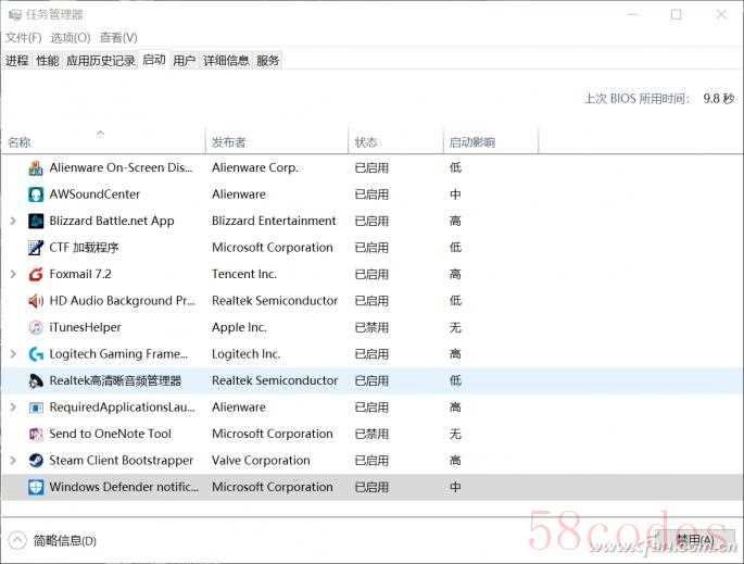 此外,还有一项Windows Defender的隐藏功能,就是“下载即时查杀“,这个并没有提供可供关闭的选项,需要大家Ctrl+Shift+Esc组合键打开任务管理器,在“启动”选项卡下找到Windows Defender进程并选择”禁用“。