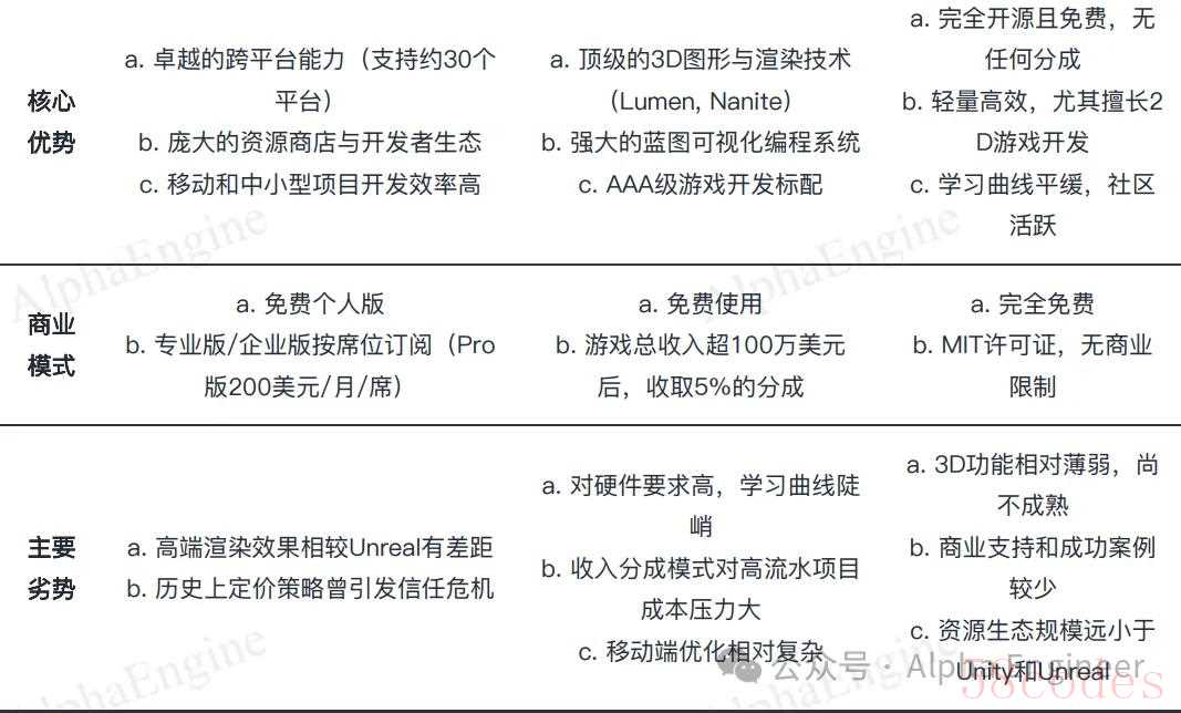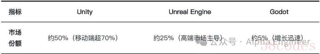 在游戏引擎领域,Unity、Unreal Engine和Godot三大游戏引擎在市场定位、商业模式和技术特性上存在显著差异,形成了差异化的竞争格局。