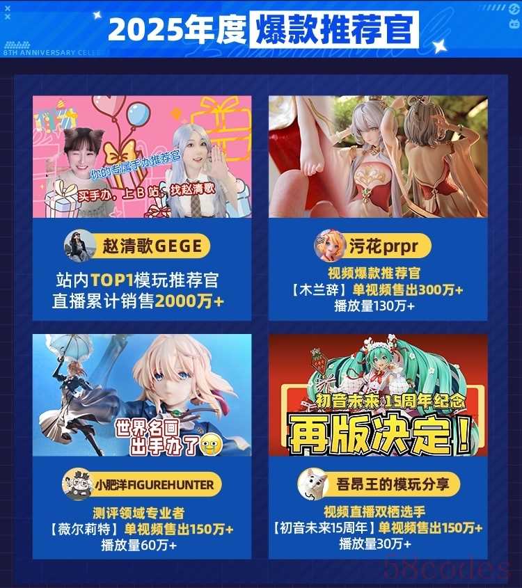 B站会员购运营团队指出,会员购的带货逻辑在于通过情感联结和细致的产品讲解,激发用户兴趣,从而实现高效转化。例如,UP主“赵清歌GEGE”虽粉丝量不大,但凭借出色的私域运营能力,单场直播GMV突破60万元,年销售额可达2000万至3000万元。“污花prpr”在一场直播中售出7000件手办,单个视频GMV达300万元;“小肥洋FigureHunter”则实现销量4800件,GMV超150万元。这些UP主均为粉丝数不足100万的中腰部创作者。