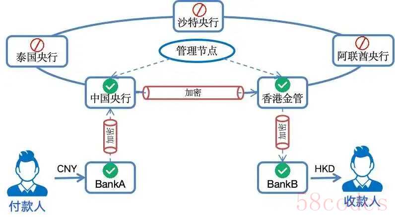 mBridge通过加密算法对每一笔交易的“用户身份、交易信息”进行隐私控制,只有交易对手、各自的央行和银行才能查看,其他参与者节点的央行和银行是无法在分类账本上查看这些敏感信息的。