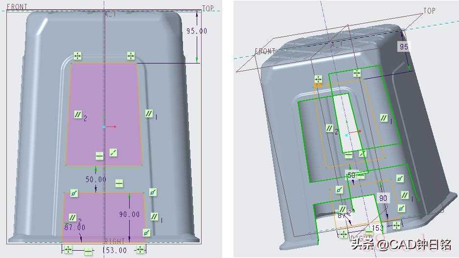 "壁厚处理:" Creo中有专门的“壳体”(Shell) 功能,可以方便地从实体模型创建薄壁特征。但对于复杂的过渡,可能需要结合拉伸、旋转、