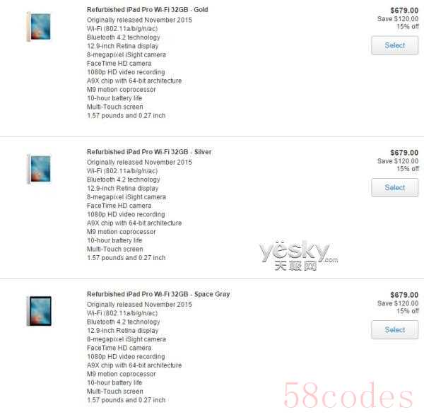 具体而言,32GB翻新版售价为679美元,比原价799美元节省120美元;而128GB版12.9英寸iPad Pro WiFi+蜂窝网络版翻新版售价则节省160美元为919美元(原价1079美元)。