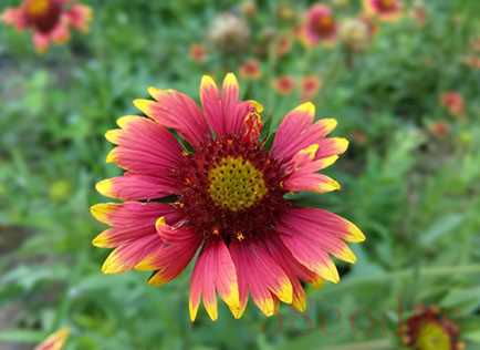以上图片就是在1300万像素大光圈镜头下拍摄的近距虚化背景图片,这样的拍摄效果非常理想,红色花朵主体与绿色背景的之间对比鲜明,同时将背景中非焦点花朵虚化,突出了拍摄主图,这样的效果用来拍摄人物和静物街景都是非常理想的。