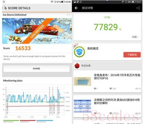 安兔兔跑分cool1拿到了77829分,属于中高端机型。Geekbench3单核性能1357分、多核性能4487分,3Dmark图形性能得分16533分,图形性能一直是骁龙处理器的强项。