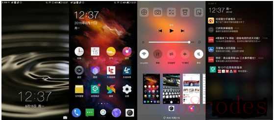 左起:锁屏、桌面、任务管理/快捷开关页、通知栏