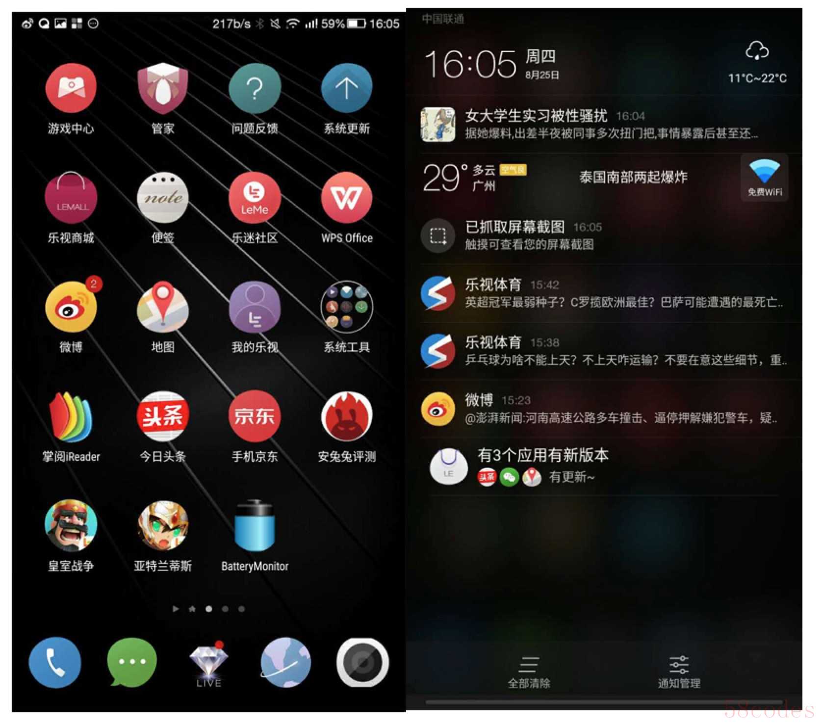 文章开头有提到,cool1 dual整合了酷派与乐视各大优势,酷派负责硬件工艺技术方面的,而乐视则提供了丰富的生态系统。cool1 dual搭载了基于Android 6.0平台的EUI 5.6操作系统,在UI的整体风格上与乐视超级手机上使用EUI是一致的,采用了简洁、扁平化的设计语言,上手后的第一感觉就是非常的顺滑、流畅。
