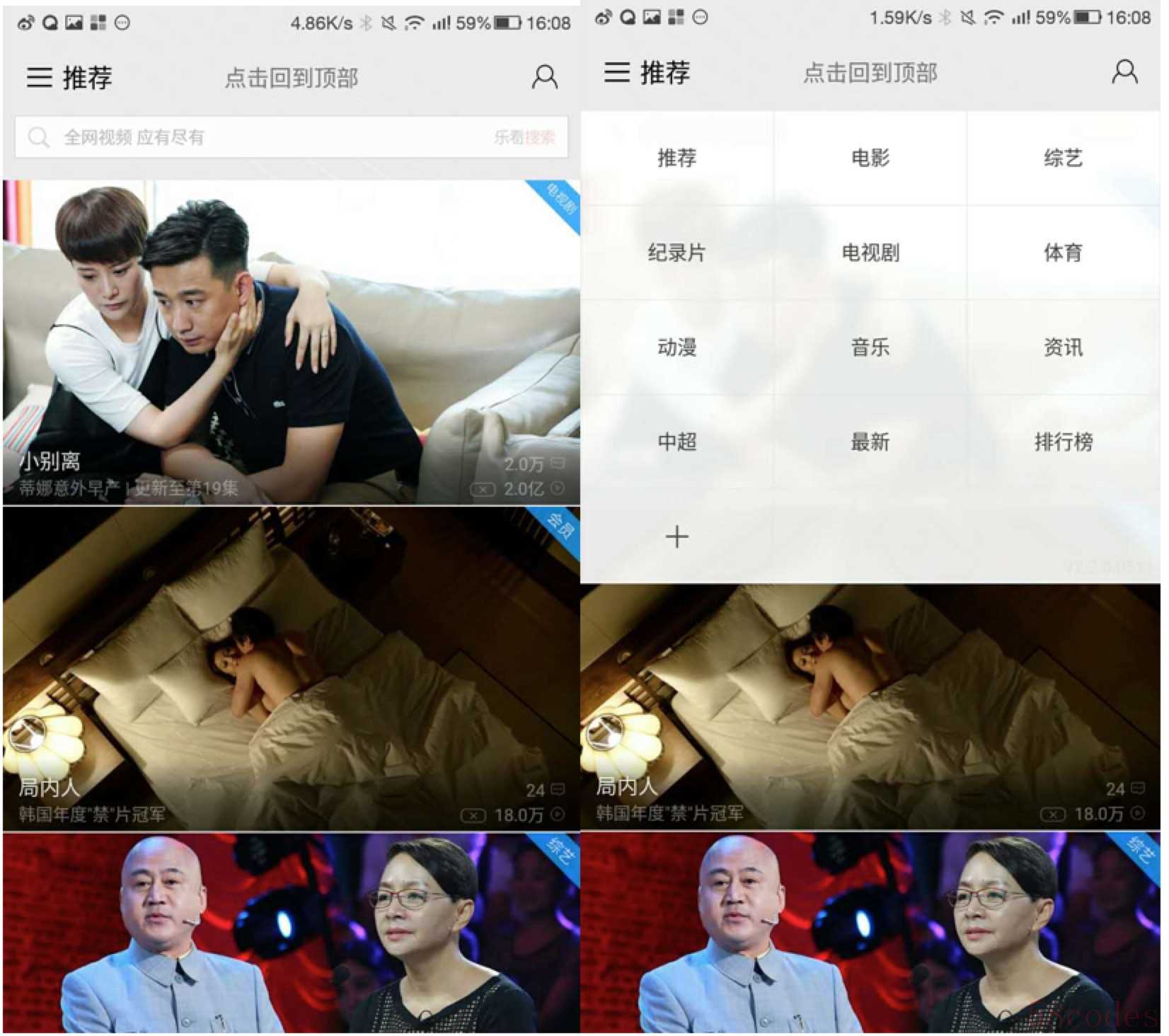 除了系统优化良好的体验外,EUI另一大亮点就是乐视的丰富影视资源。当你滑到桌面的最左侧的时候,就会看到EUI的乐见桌面,该桌面以瀑布流的方式呈现,内容包含电影、电视剧、综艺节目等,手机连接wifi后,用户可直接在这上面找自己想要的视频点击观看,非常方便。