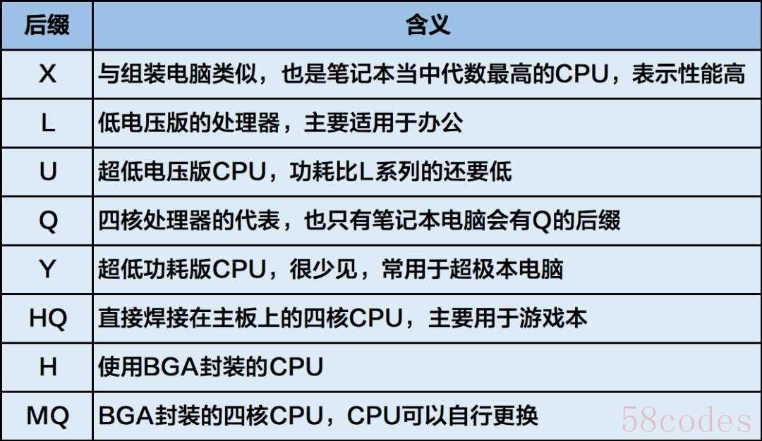 而且,每一个CPU等级都会根据用途分成不同的版本,所以i7不是一定比 i5 更新、更优,具体要看 CPU 的整体参数,也就是这些一串串经常让小白们摸不着头脑的文字: