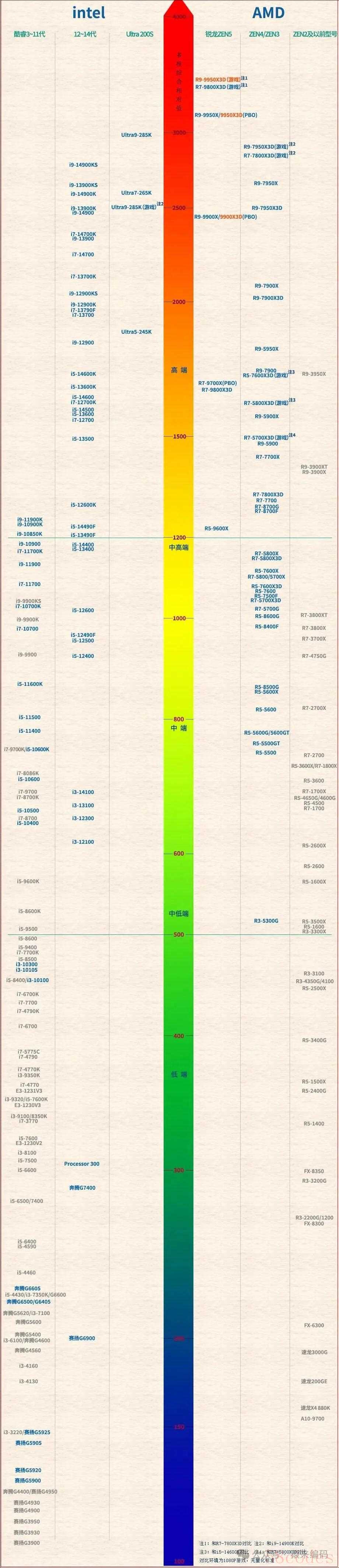 最后附上两张天梯图给大家参考:CPU天梯图和显卡天梯图