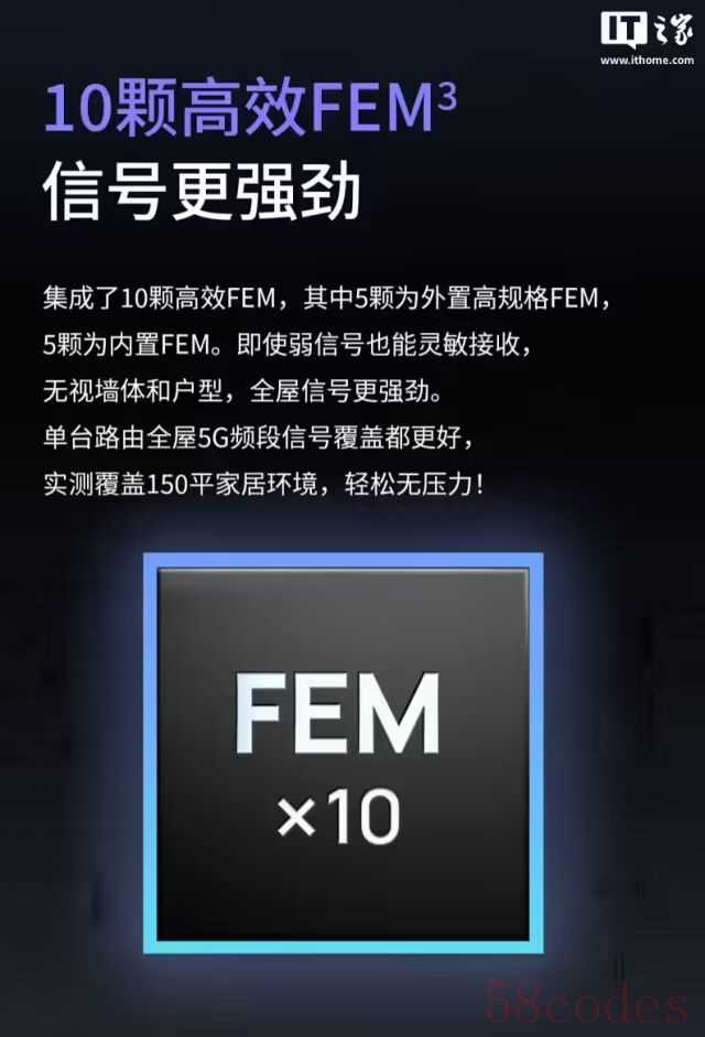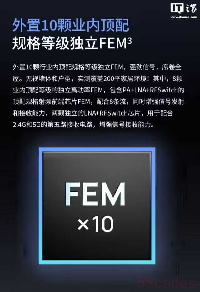 具体来说,7DR7270 采用 5 颗外置独立 FEM(IT之家注:4 颗 PA+ LNA + RF Switch 和 1 颗 LNA + RF Switch)、5 颗内置 FEM,匹配双 2.5G 口 + 四千兆口。