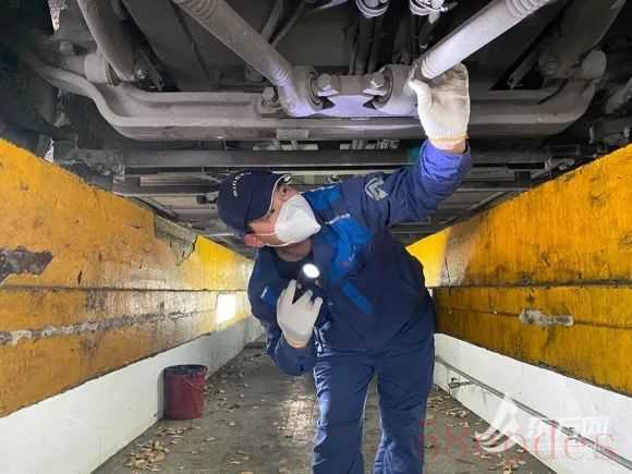 正对列车进行日常检查