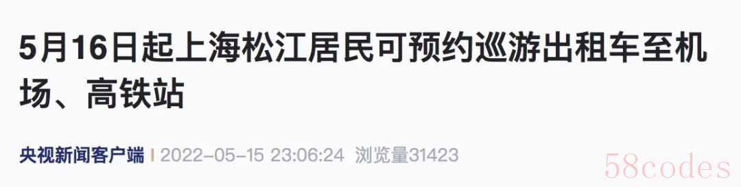 5月16日起,上海松江居民可预约巡游出租车至机场、高铁站,出行人员仅限防范区内且持有48小时内核酸阴性证明的人员。