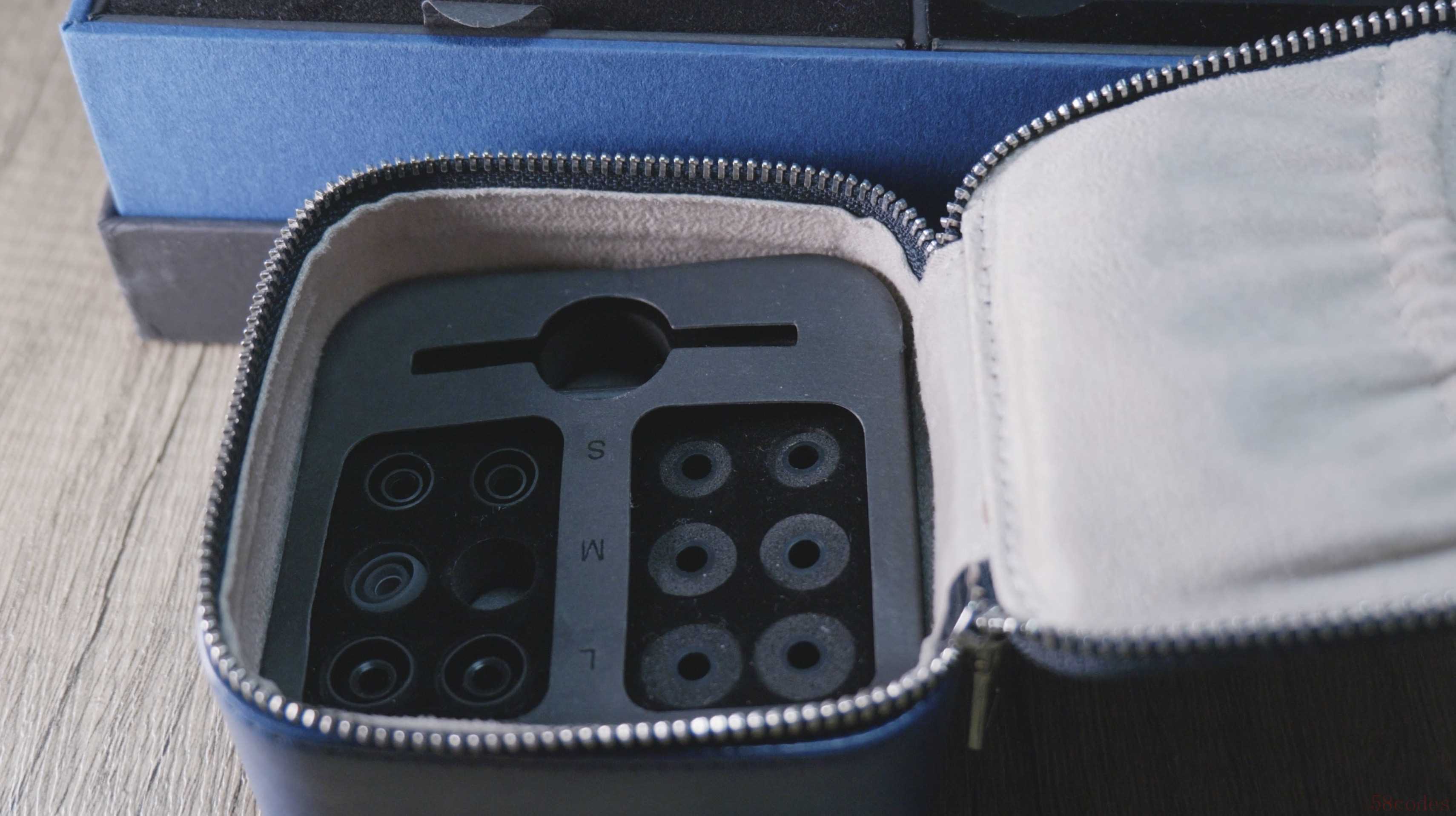打开耳机包,里面错落的是各种规格大小的耳套,和一根清洁棒用来清洁耳机的细处。耳机套还是非常丰富的。