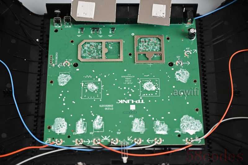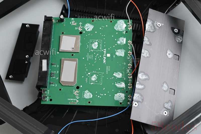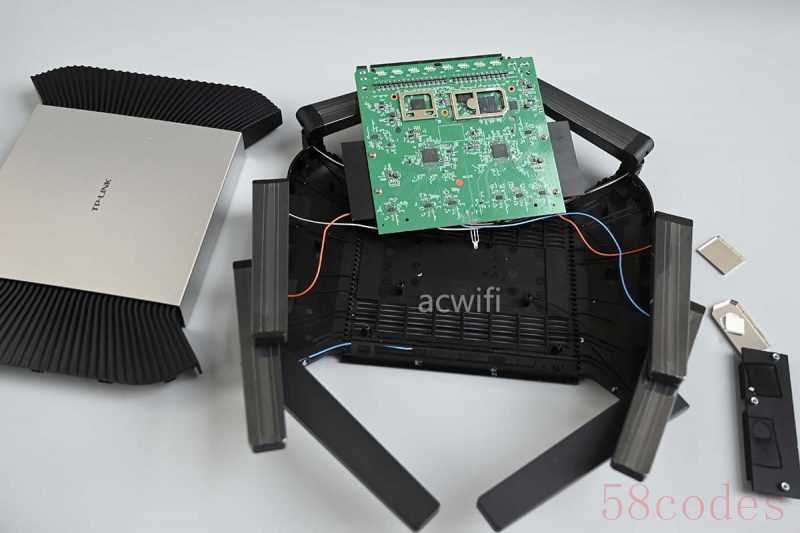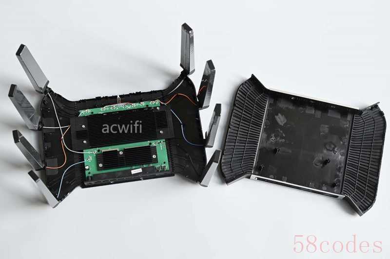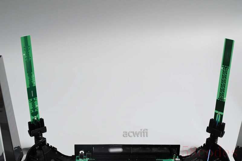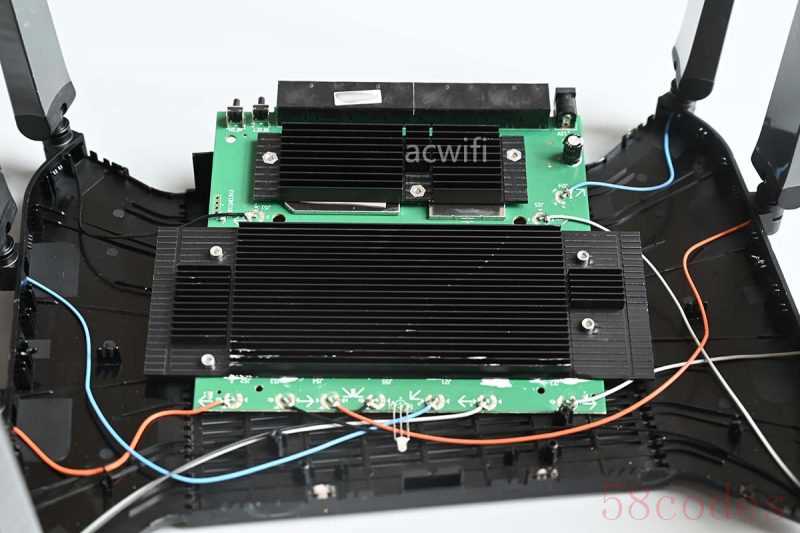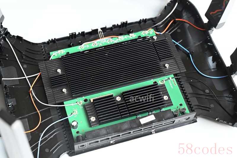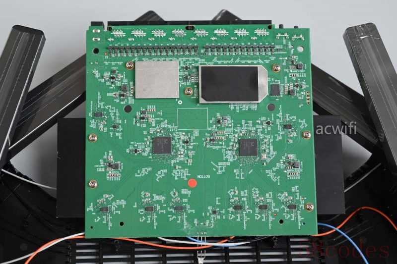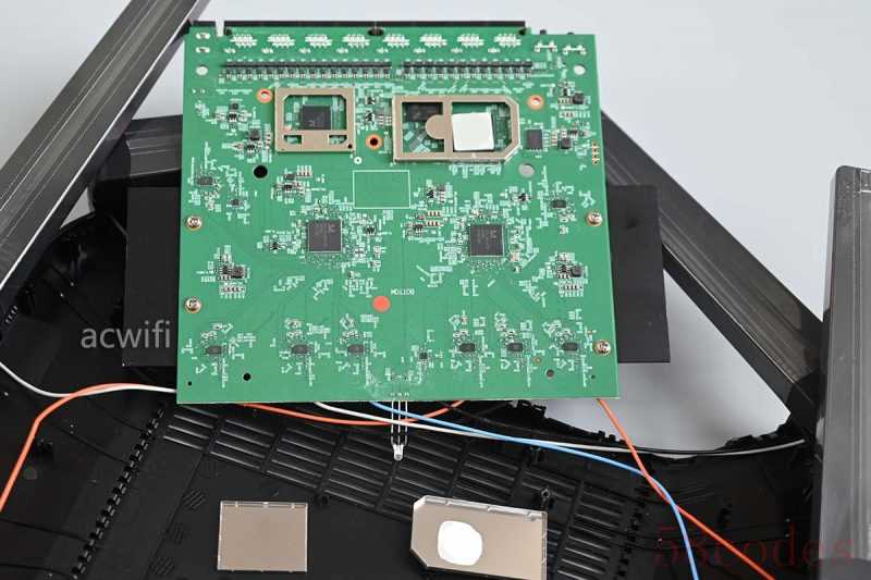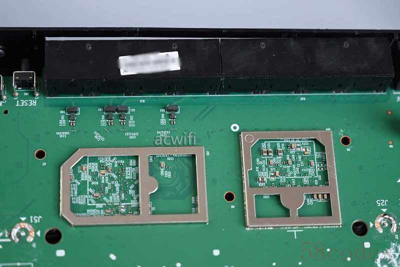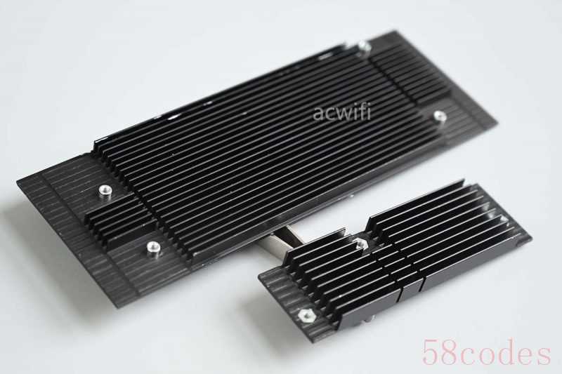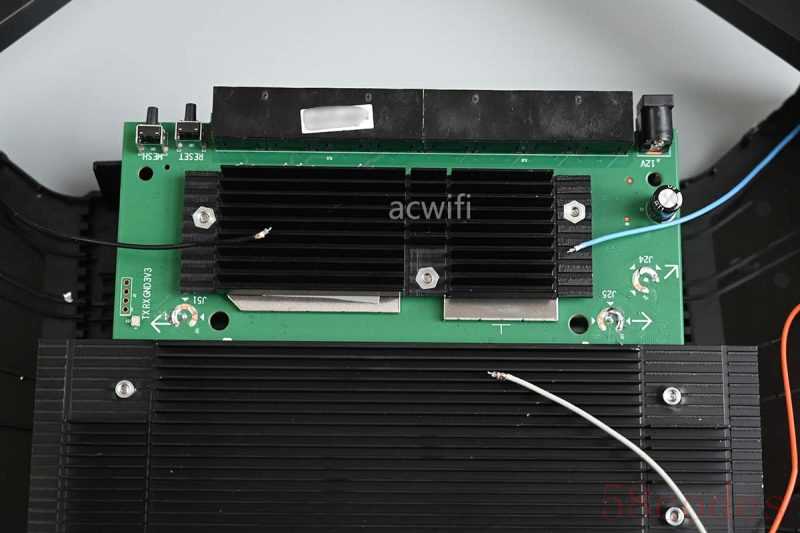 散热器有两片,靠近网口的是较小的,靠近天线接口位置是大的散热。商品页说的是十颗高功率FEM呢,看来无线电路做足了散热。