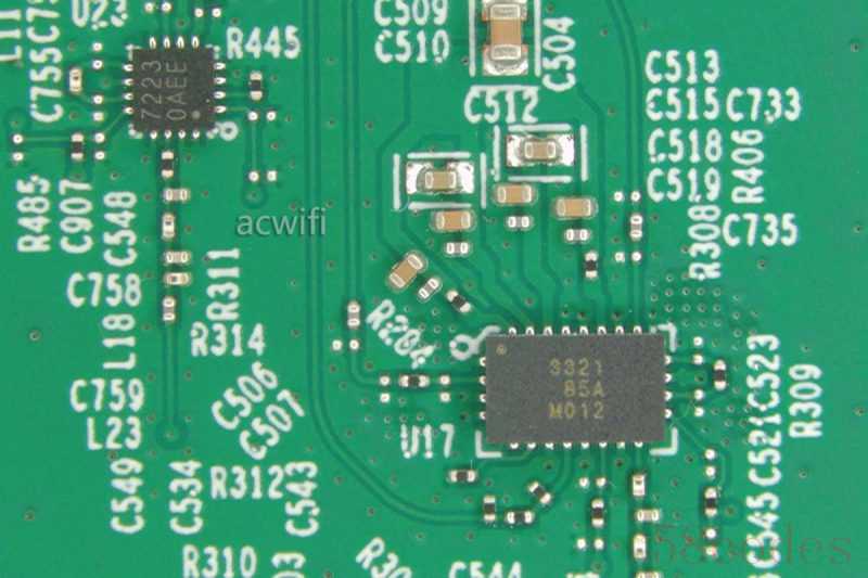 外置了四颗独立的2.4G FEM芯片和一颗LAN芯片,2.4G FEM芯片型号是唯捷创芯(vanchip)的VC5333,XDR5480 v3.0和XDR4288都有使用它。负责第5路接收的是这颗卓胜微的MXD7223,集成了LNA和收发切换开关。