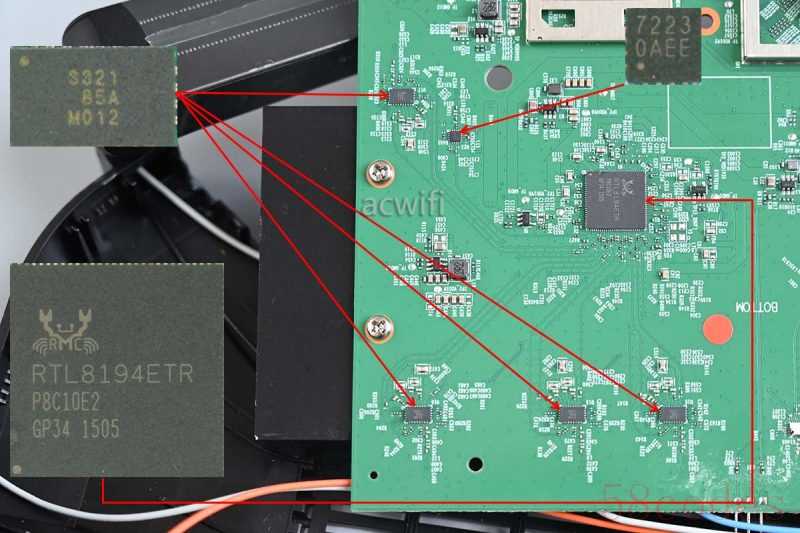 好了,现在来看无线射频电路方面的芯片 。先看2.4G无线芯片 :RTL8194ETR,支持4x4MIMO,在4096-QAM和40MHz频宽下的最高无线速率是1376Mbps,无线带机量最高512个。支持4发5收(4T5R),即有5个接收天线,增强接收能力。