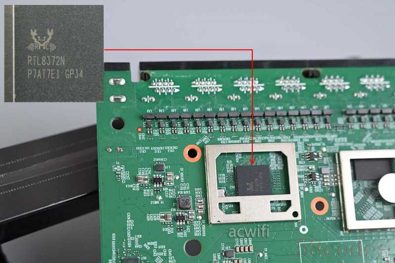 (我接了TTL,但没有回显,可能缺少下拉电阻。)CPU内置了四个1GE,所以四个千兆口都接到了CPU身上。而负责四个2.5G网口的是这颗2.5G交换芯片RTL8372N,它跟RTL8372差别在于封装和尺寸,特别是缩减了周边电路,所以特别适合用在板子空间有限的无线路由器身上。两者在性能上,找不到差异,即使有,也难找到相关说明。