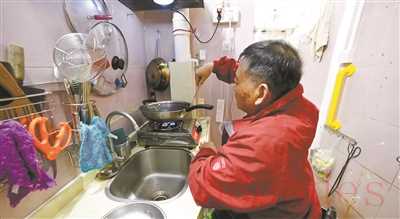 经过改造,周志权家的厨房宽了不少,坐着轮椅也能通过了。