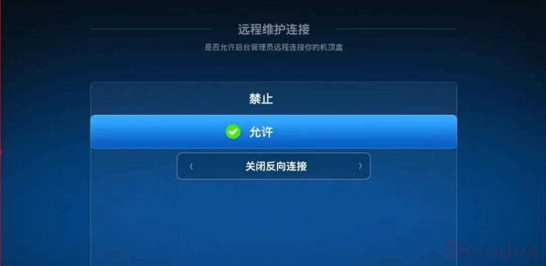 将“远程维护连接”选项切换到允许状态。电脑连接家里的路由器,和盒子保持在同一局域网下面。