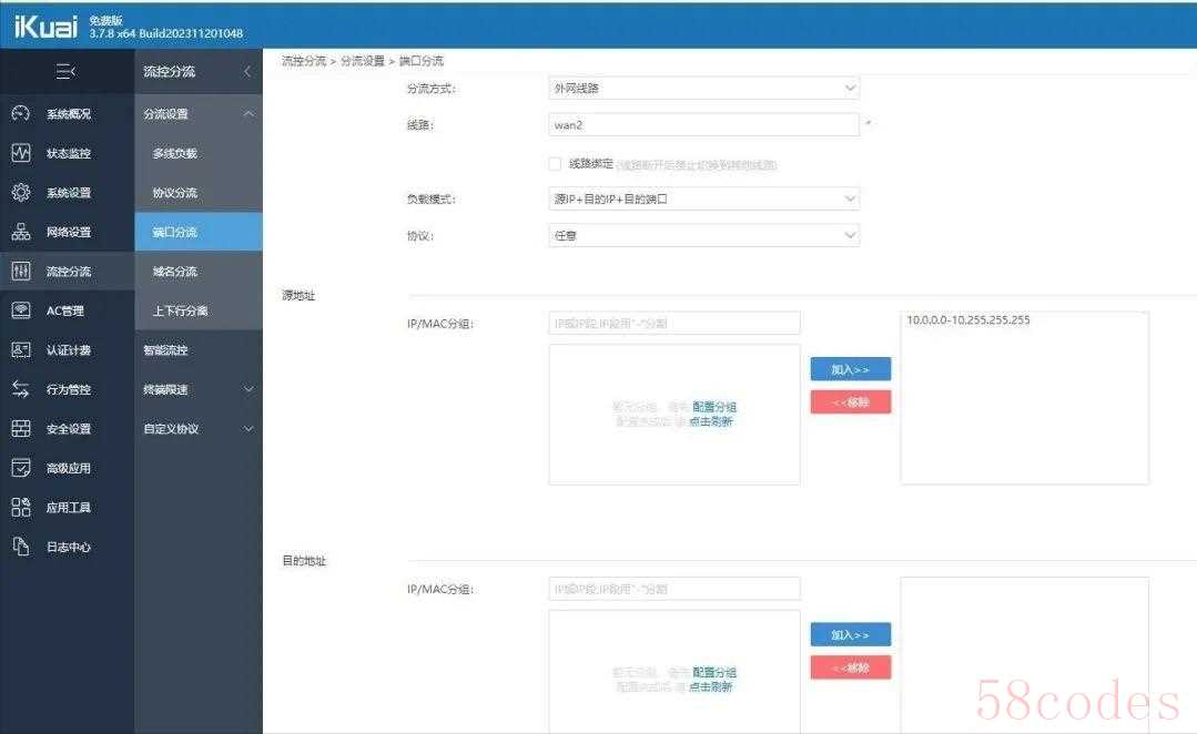 爱快WAN2用来走IPTV,设置DHCP,,页面上的option12填写机顶盒的STBID,option60填写 HEITV(河北电信专属的,其他省份自己抓包也能找到)。然后点开下面的高级设置,把盒子的MAC地址填到MAC地址模拟这里。填完后保存,这时候WAN2就能成功获取IP地址了。