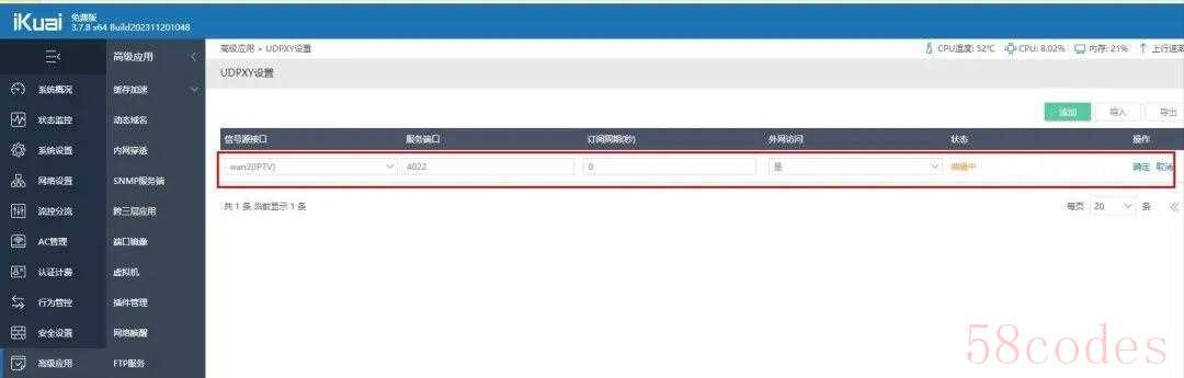 在路由器里开启udpxy 功能,端口设置4022.当然也可以自己改个自己喜欢的数字。