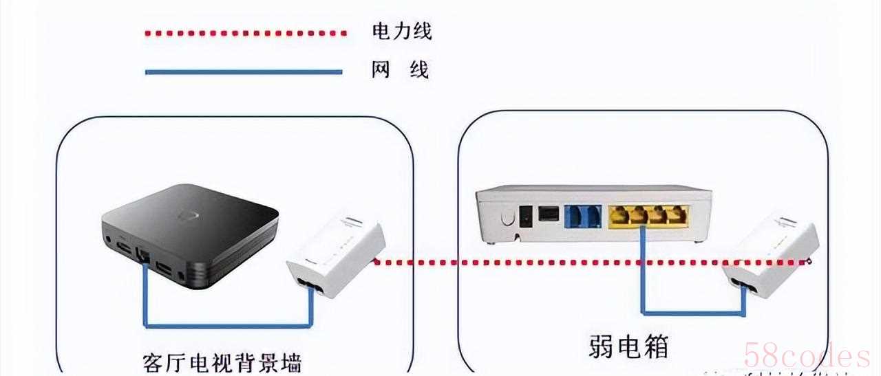 只需要把其中一个电力猫插在光猫旁边的电源插座上,电力猫网口和光猫IPTV口用网线连起来。另外一个电力猫插在IPTV盒子旁边的插座上,然后将电力猫的网口和IPTV盒子的网口连起来,只要这两处的220V电源在一个空开下面,就能用电信盒子看电视了。