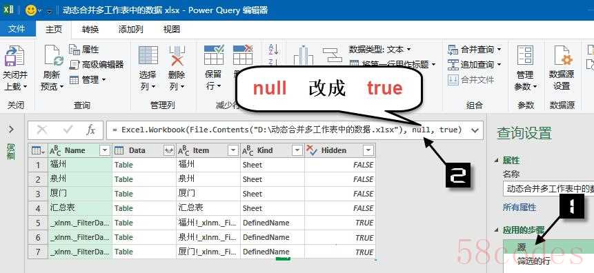原公式:= Excel.Workbook(File.Contents("路径"), null, true)