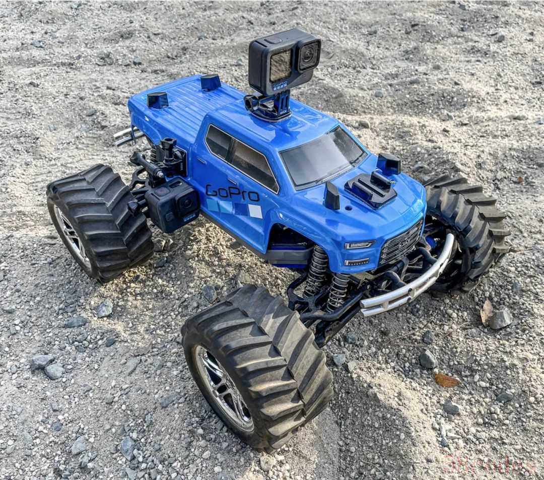 起初使用TRAXXAS 4×4测试时,发现全尺寸的GoPro HERO有点太重,无法安装在卡车车身等较薄的柔性表面上。而Mini的体积更小,重量更轻一些,令人惊讶的是它的图像稳定度非常之高,即使在我将60帧减慢到25帧的几个片段中也是如此。