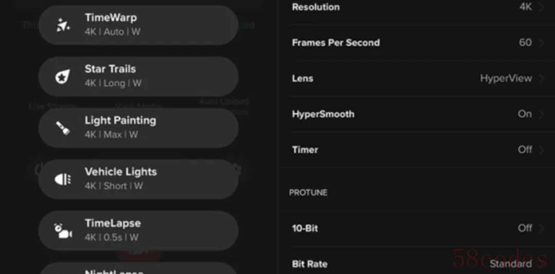 在测试中使用专业模式进行菜单控制,测试菜单功能,以及它与全尺寸HERO11 Black相比如何。有一些标准视频设置与HERO11 Black相似,因为它们共享许多相似的组件,例如传感器和处理器内核。