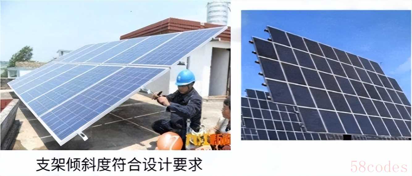 ② 支架倾斜度角度符合设计要求,手动可调支架调整动作灵活,高度角调整范围 满足设计要求;跟踪式支架与基础固定牢靠,跟踪电机运转平稳。