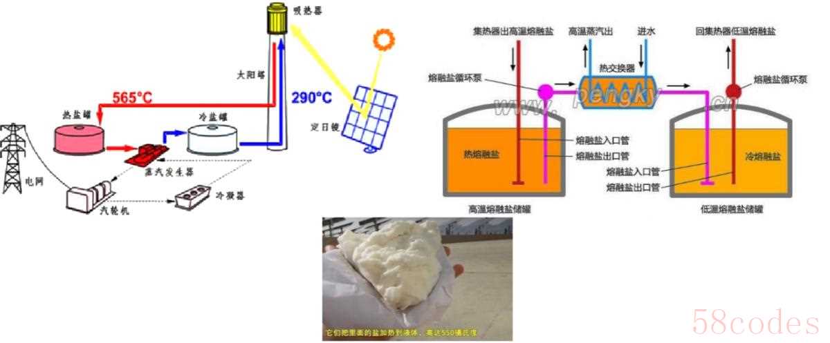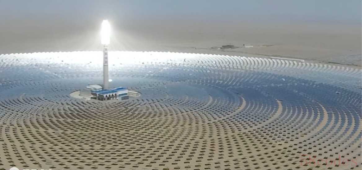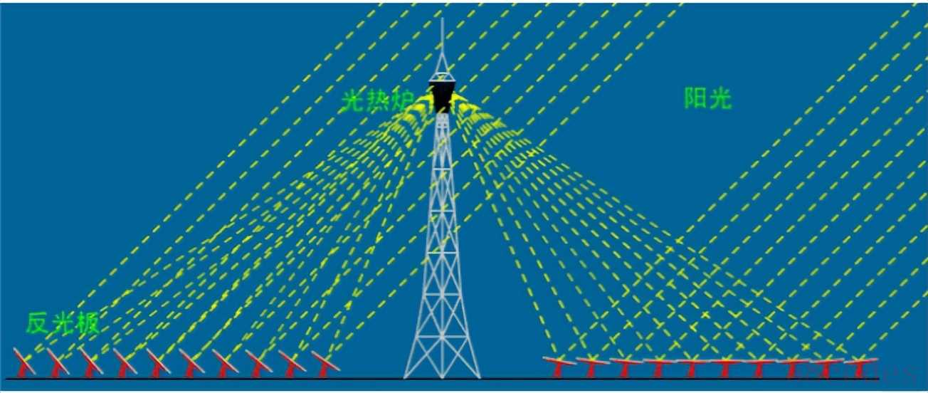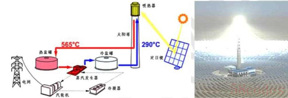 施工准备→基础检查验收→设备检查→定日镜安装→吸热器钢结构安装→吸热器及系统管道安装→换热器及系统管道安装→汽轮发电机设备安装→ 电气设备安装→调试→ 验 收 。
