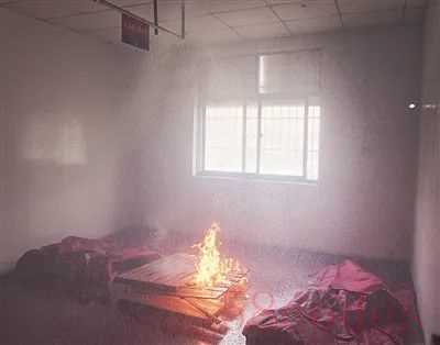 烧毁最为严重的是未安装喷淋的房间,灭火后,现场所有的可燃物几乎被烧光,只留下了一堆黑炭。