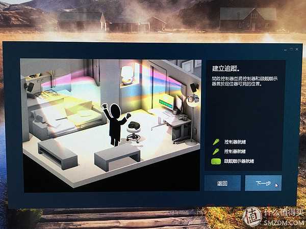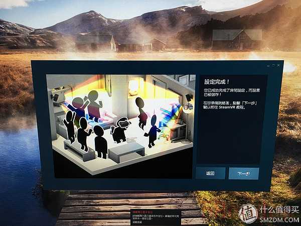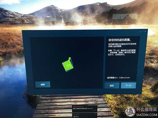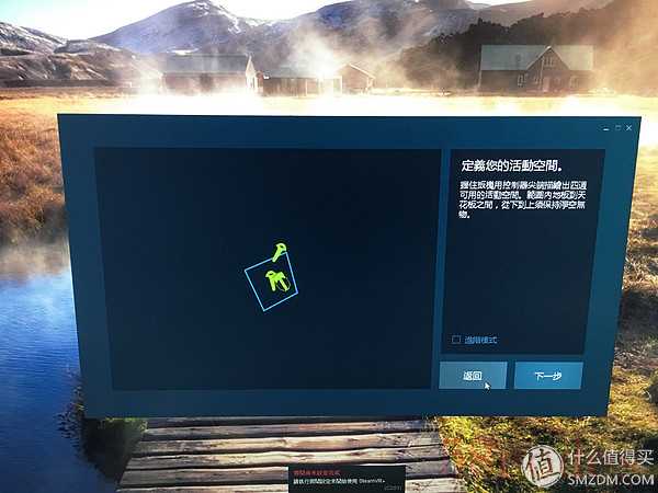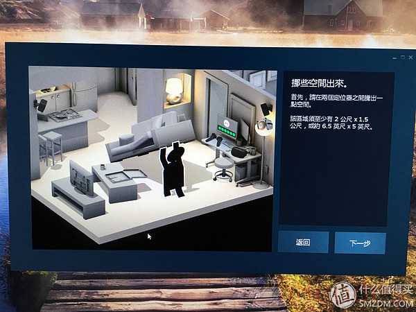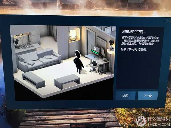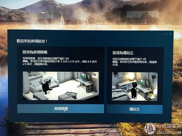 线接好后就开始安装软件了,在官网下载好软件后打开会要你选择是活动的环境还是站的环境,玩VR肯定是活动玩的爽。活动环境最小空间要两米乘一米半,最大五米乘五米。